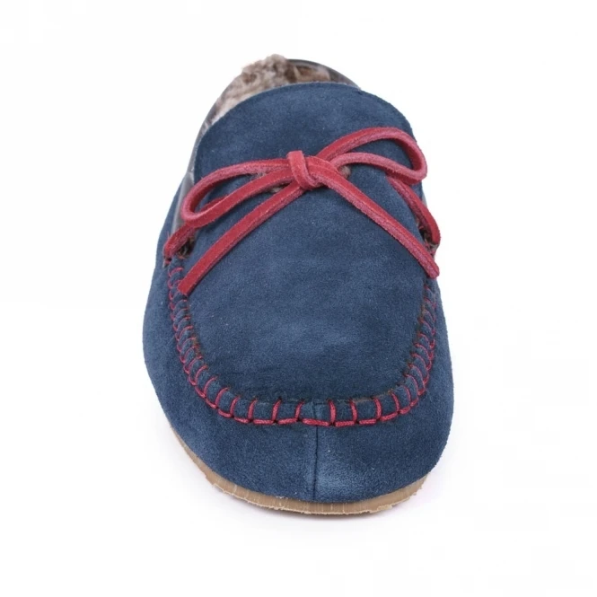 Get yourself a pair of these classic Moccasin Slippers, available in Navy suede.