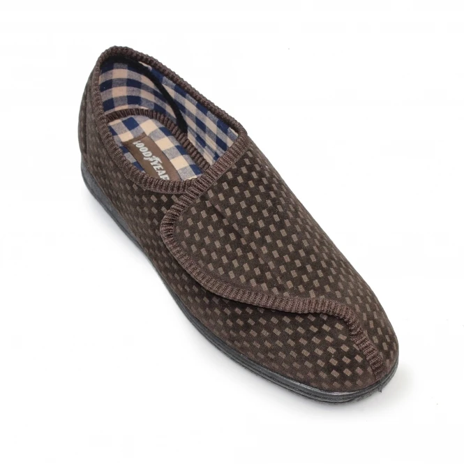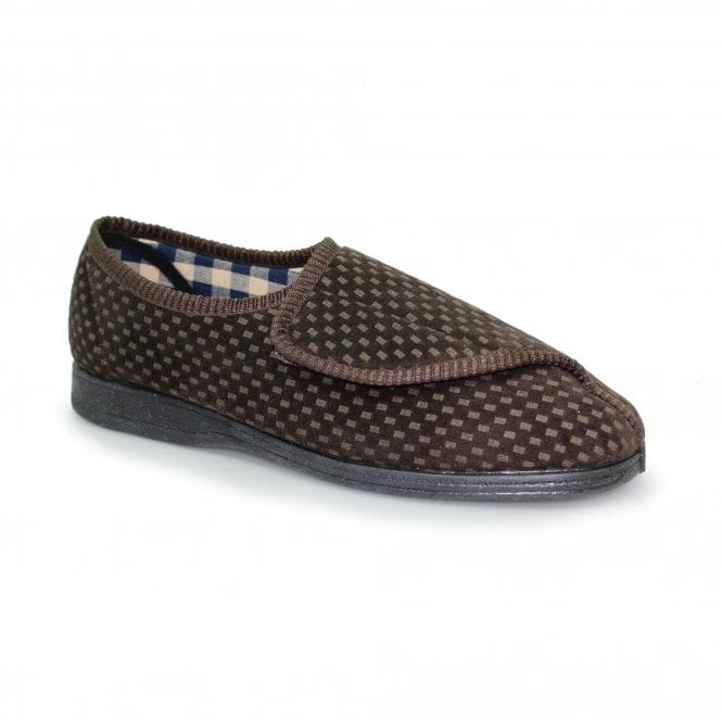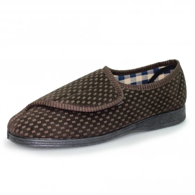 The Columbus II is the new re vamped version of our popular slipper Columbus. The fastenings on the front of the slipper have been upgraded to a larger one touch strap for easier access for the foot. The upper of the slipper has been patterned with a check design and finished with a stylish cord trim.