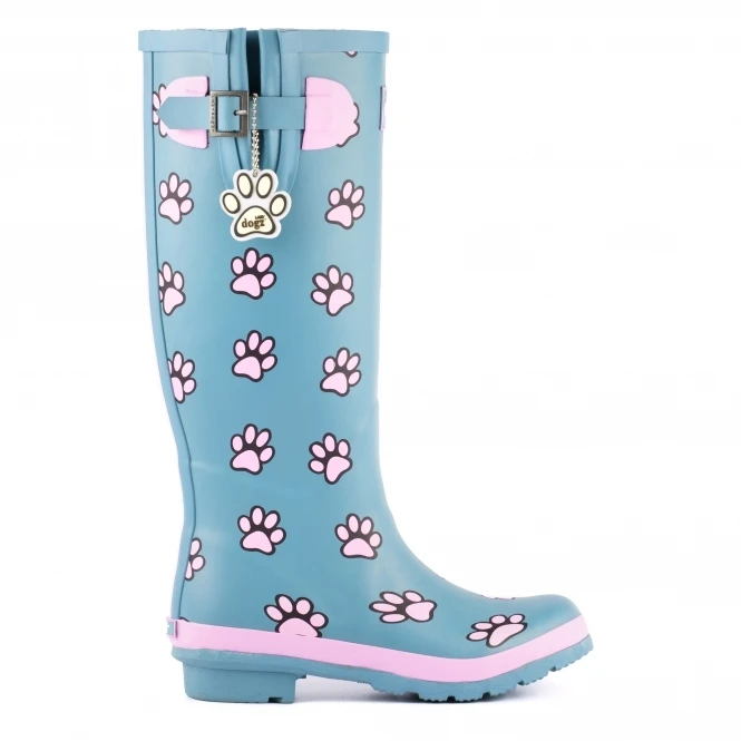 Stand out from the crowd with these fabulous, Lazy Dogz, Cookie wellingtons. The teal upper features an adorable, repetitive paw print making this the perfect wellington for walking the dog or as a gift for the dog lover in your life.