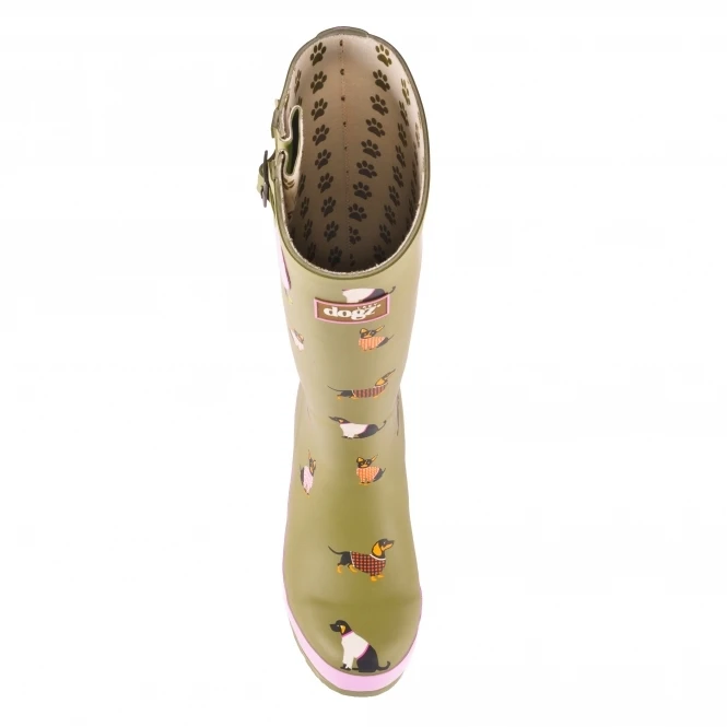 Stand out from the crowd with these fabulous, Lazy Dogz, Harper print wellingtons. The Green upper features three adorable dog prints including a Labrador, Chihuahua and Dachshund, making this the perfect wellington for walking the dog or as a gift for the dog lover in your life.