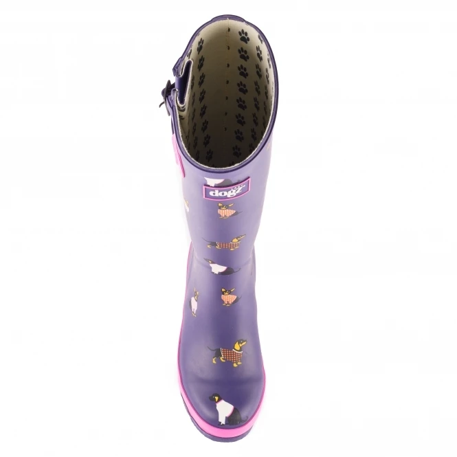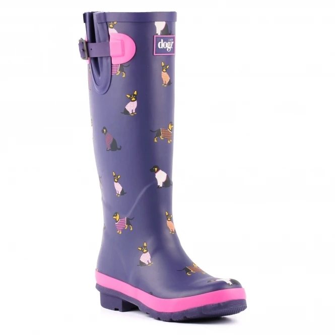 Stand out from the crowd with these fabulous, Lazy Dogz, Harper print wellingtons. The Navy upper features three adorable dog prints including a Labrador, Chihuahua and Dachshund making this the perfect wellington for walking the dog or as a gift for the dog lover in your life.