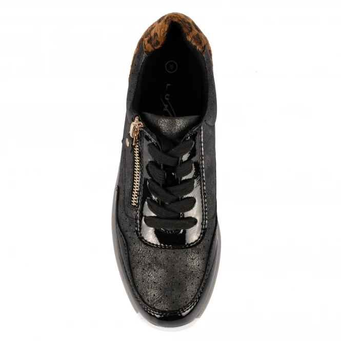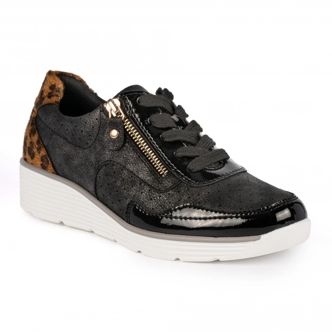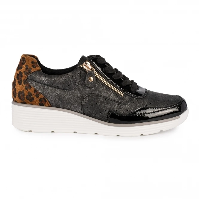 Smooth and sleek, the Amelie is a stunning trainer. Mixing a low wedge and running trainer into one brings the perfect fusion for modern trainers. The ocelot heel gives a striking design and brings the trainer life, we absolutely love this everyday trainer.