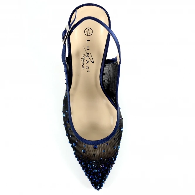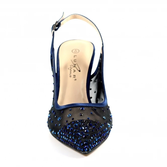 The Arabella Mesh Slingback Court is the perfect glitzy heel. The unique Mesh Upper is detailed with coloured Gemstones to match the colour of the Upper Trim and Toe Cap. This style will complete any occasion outfit and is perfect to add some sparkle with the matching Clutch Bag the ZLR044.