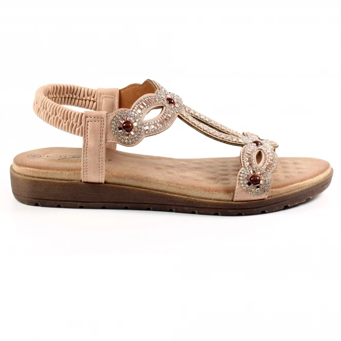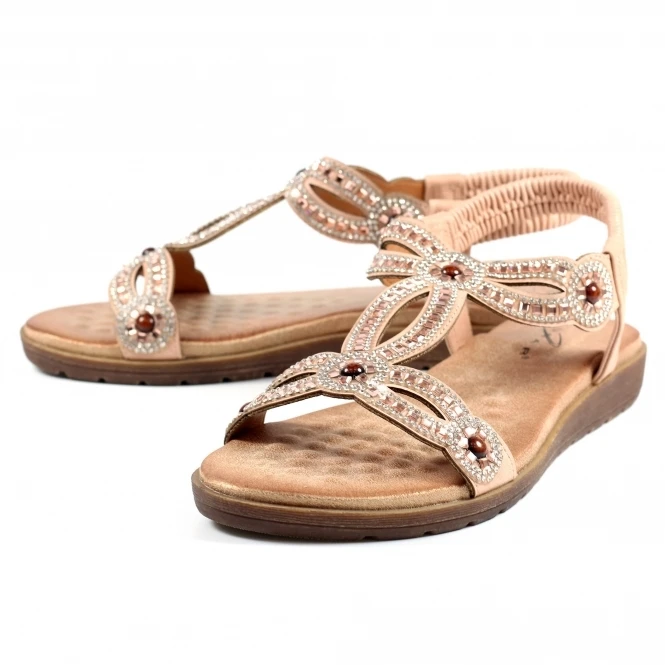 Our new Arraso blue sandal is the perfect combination of comfort and style. The upper is made from premium quality faux leather and is faux leather lined for a soft feel. The synthetic sole offers excellent grip, and the elasticated slingback ankle strap provides a secure fit. The padded insole provides superior cushioning, while the colourful beading and diamante details make it stand out in any crowd.