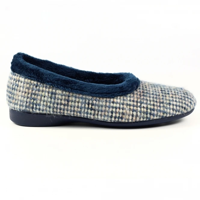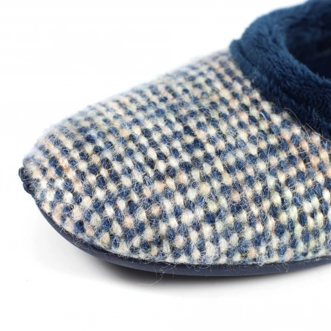 The Bakewell, a cosy, slip-on pump with a fun woven design and faux fur trims. Available in blue or pink, they come complete with a luxurious padded insole making these slippers an absolute delight to wear.