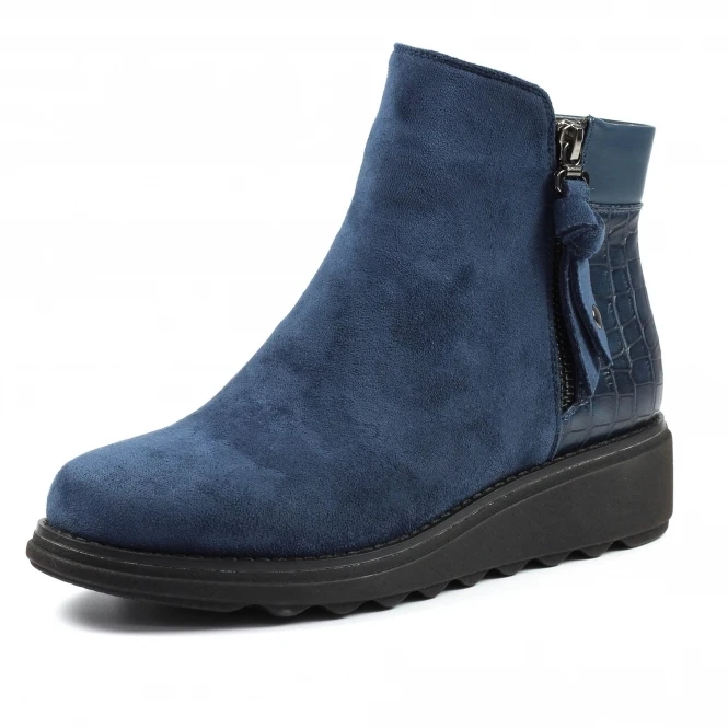 LUNAR Gretna Navy Ankle Wedge Boot
