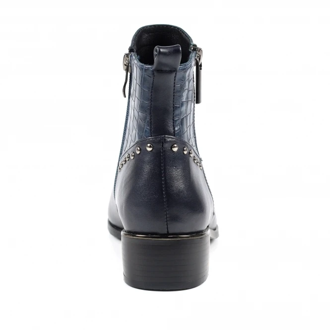 The Jasper, a classic, leather look, ankle boot. It features a decorative gold zip to the outer ankle, stud detailing around the heel and to the back of the ankle, a faux croc effect. The boots also feature a luxurious padded insole and a zip to the inner ankle for ease getting on and off.