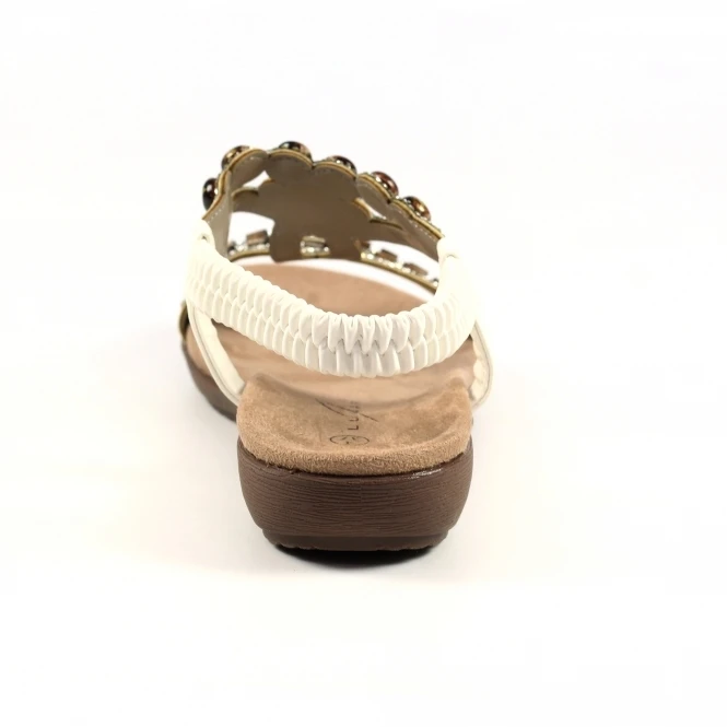 The Malone, a seriously comfortable and stylish sandal. The elasticated ankle strap ensures the sandal is secure while the soft, padded insole ensures comfort. The Malone features wooden beads set upon a delicate diamante background.