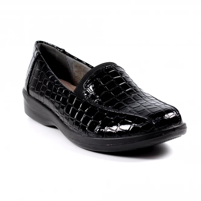 For everyday style we recommend the Nieve with a patent upper, low heel and a padded insole. To ensure comfort throughout the day. We stock this in black or wine with a fabulous faux patent croc-effect.