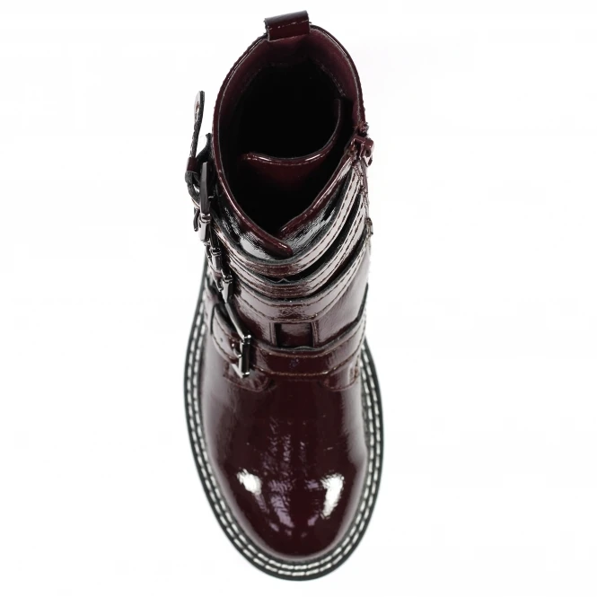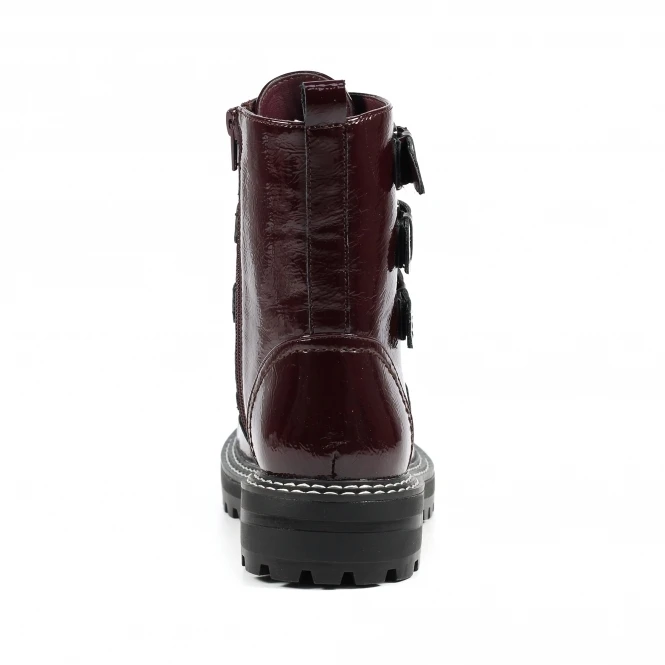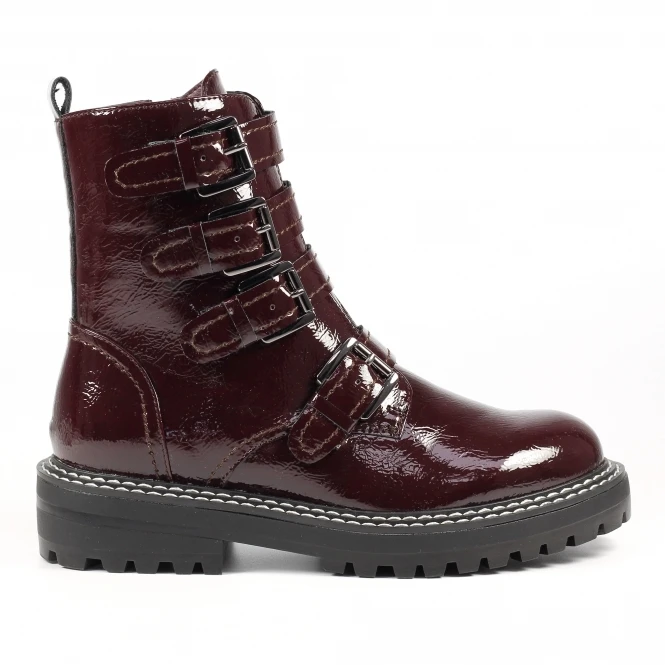 The Panda, the ultimate patent leather, fashion biker boot. This boot is sure to turn heads, in the best way possible. Available in black or burgundy with 4 chunky straps, this pairs perfectly with any outfit you want to grunge up. It features a side zip for ease getting on and off and a padded insole for day long wear.