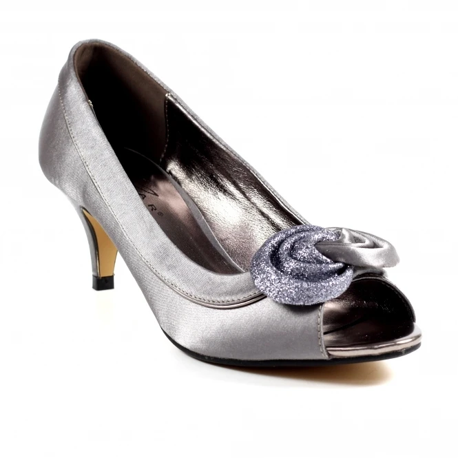 Ripley is a low heeled peep toe with a soft satin upper and twisted rose accent. A very popular style that will add the perfect finishing touch to your evening, or occasion outfits. Ripley coordinates beautifully with the Ripley clutch bag.