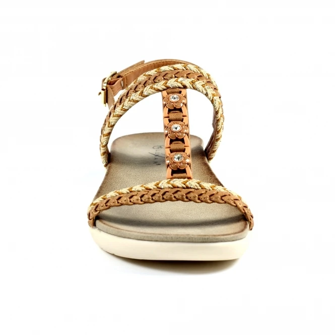 The Sidcup, a fabulous slingback sandal set upon a low wedge sole. It features beautifully woven straps with floral details and a sling back strap to secure. The simple and clean design makes this perfect for all occasions.