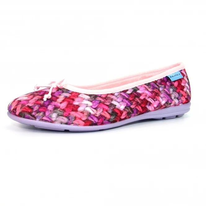 The Swizzle is defiantly a colorful character with soft lining and a warm padded insole. The pump design allows the foot to sit cozily in the slipper providing hours of comfort and warmth.